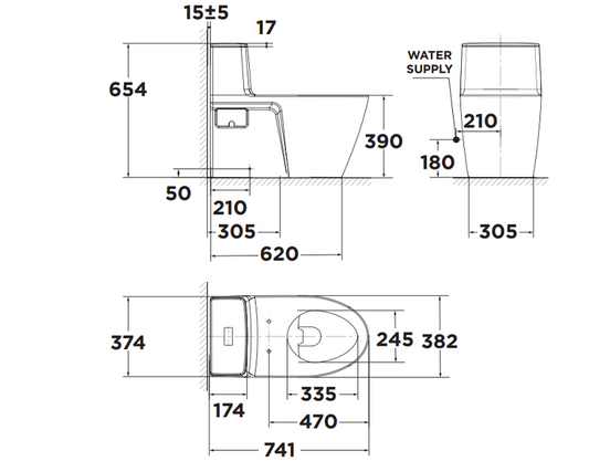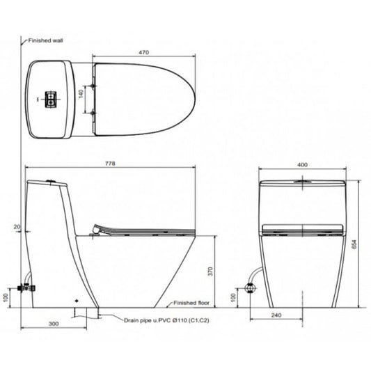 Bàn cầu một khối + nắp điện tử American Standard WP-1880PL