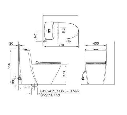Bàn cầu một khối + nắp rửa điện tử American Standard VF-2010PL