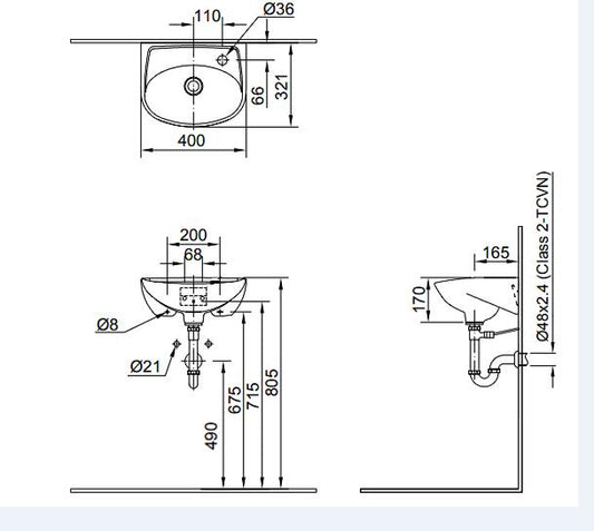 Chậu treo tường Inax L-285V ( EC/FC ) ( không bao gồm chân chậu )