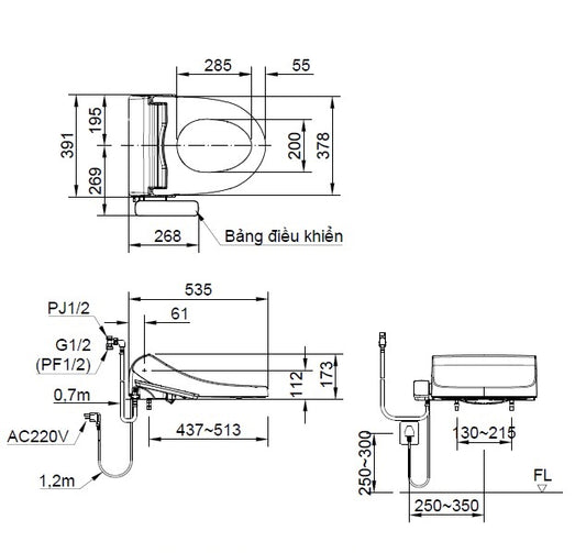 Bàn cầu một khối + nắp rửa điện tử Inax AC-912+CW-KA22AVN