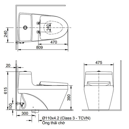 Bàn cầu một khối + nắp rửa điện tử Inax AC-1135+CW-H17VN
