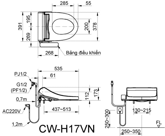 Nắp rửa điện tử Inax CW-H17VN/BW1