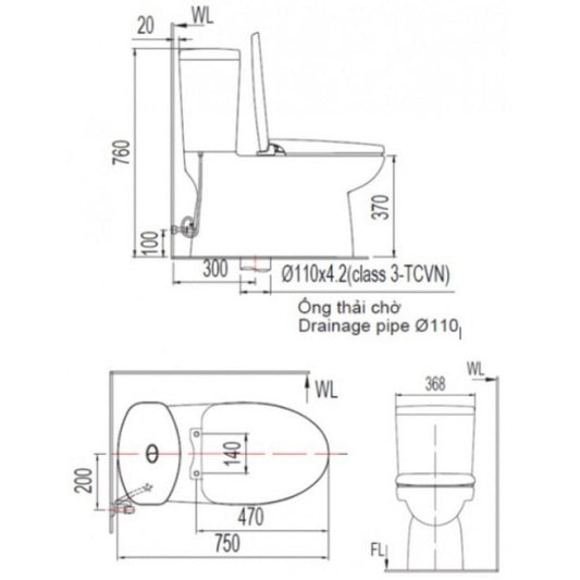 Bàn cầu 2 khối Inax C-108VAN/BW1