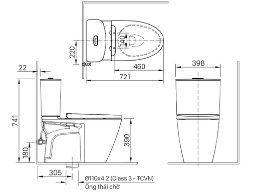 Bàn cầu hai khối + nắp rửa thông minh American Standard Loven VF-2162S