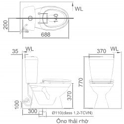 Bàn cầu 2 khối Inax C-108VA/BW1