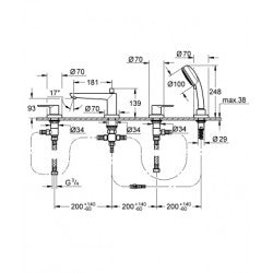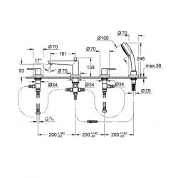 Vòi xả bồn tắm 3 lỗ Grohe 2511800A