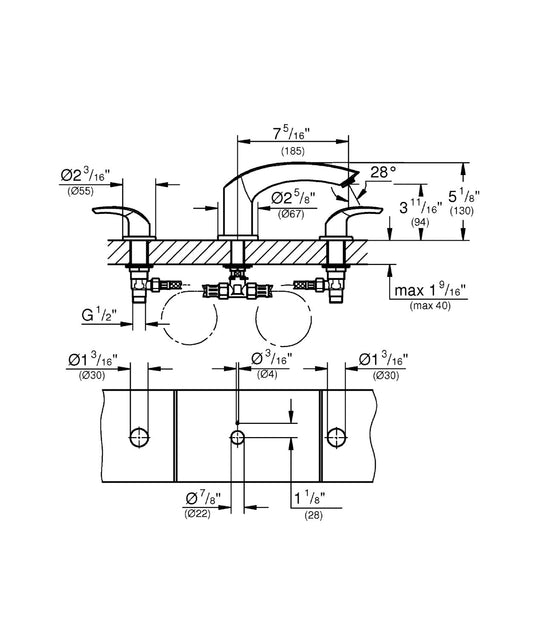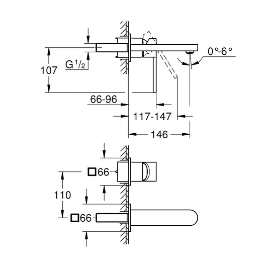 Vòi chậu 2 lỗ gắn tường Grohe Plus 29303003 M-Size
