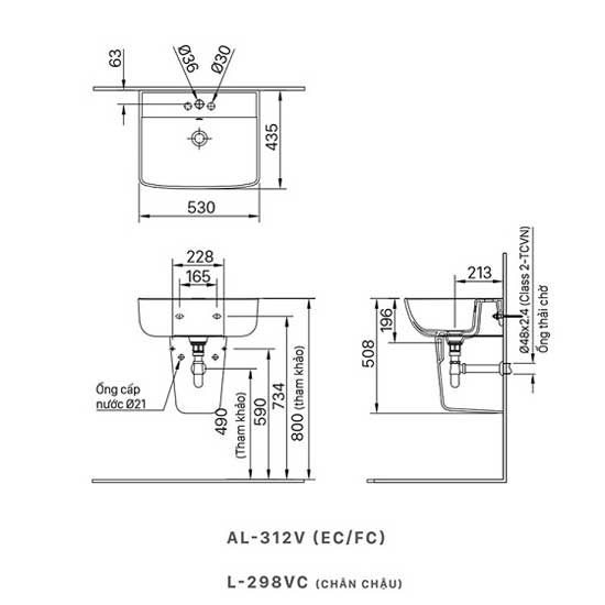 Chậu rửa lavabo treo tường kích thước trung bình.